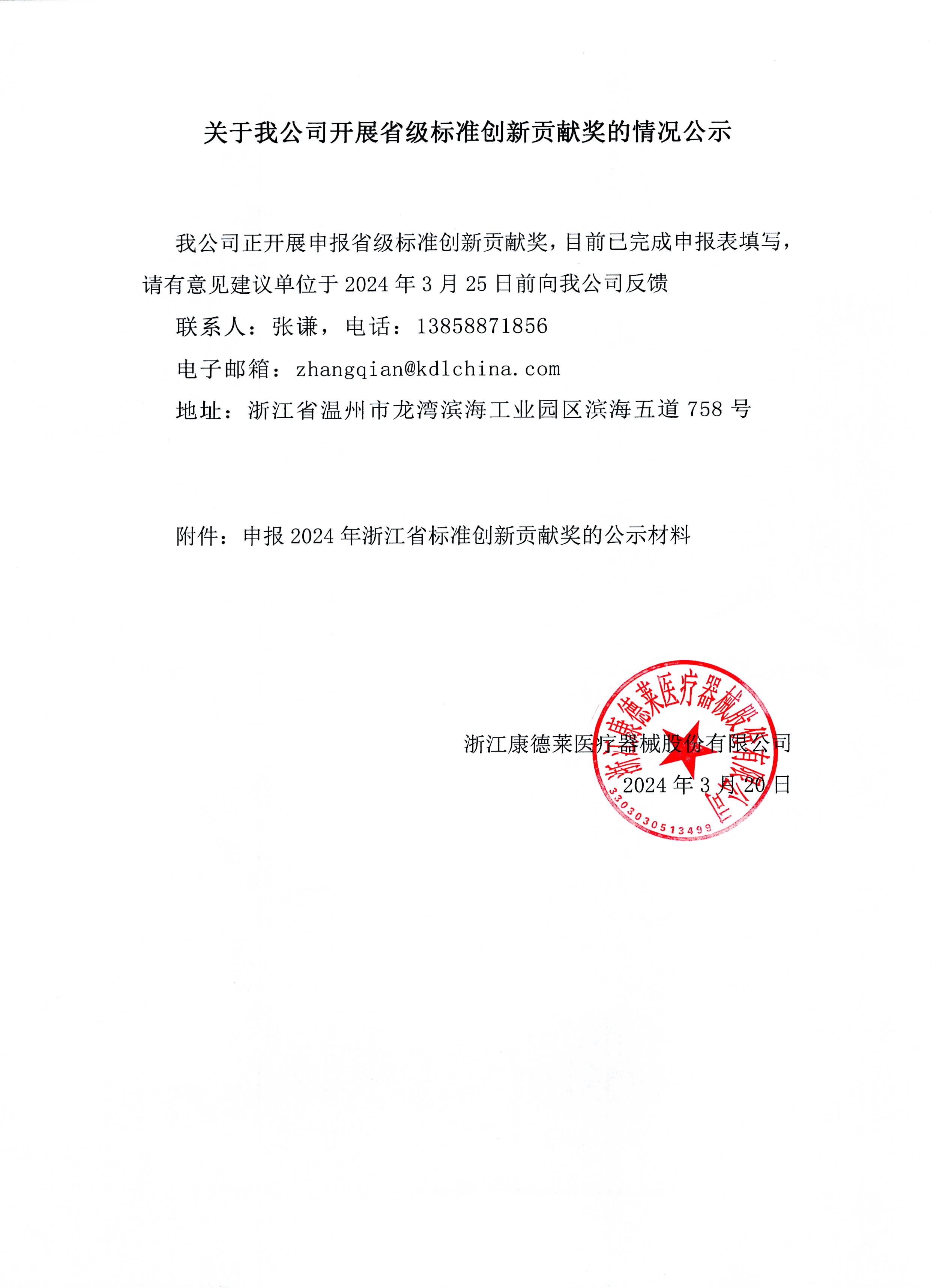 關(guān)于我公司開展溫州市標(biāo)準(zhǔn)創(chuàng)新貢獻(xiàn)獎的情況公示